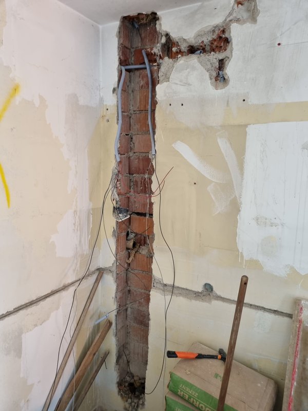 Gestern schon angefangen, heute dann fertig: die letzten Heizungsrohre in der Küche rausgeschnitten. Dank neuem Demontage-Sägeblatt am Elektro-Fuchsschwanz ging das ganz gut. Trotz Gefummel, aber ich will ja keinen Pfusch und alle alten Leitungen raus haben.