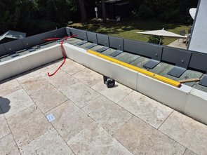 Dann kam auch der Chef und zu viert haben sie die Profile und Winkel ausgerichtet, angeschraubt und die ersten angebohrt. Hat man bis in den Keller gehört.