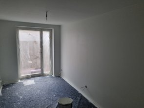 Gästezimmer geschliffen (dabei nochmal einen Matzen reingehaun, schnell ausgebessert) und danach fertig gemalert. Hatte erst gefühlt zu viel Farbe angerührt, dann hats doch knapp nicht gereicht. Hab jetzt dann doch einige Eimer noch verbraucht und gar nimmer sooo viel weiß übrig wie befürchtet. Da individueller Weißton kann ichs leider nicht zurückgeben.