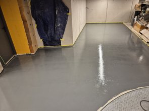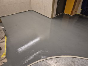 Bei der letzten Kontrolle vorm Schlafengehen wars dann schon bissl dunkler :-) Hatte Lüfter zwischendrin mal biss ausgeschaltet, da die Temperatur dann sogar auf über 11 Grad gestiegen war. Und das Material ja 20 Grad warm war, als ich es aufgebracht hab. Bin echt mal gespannt, wann ich am Sonntag dann die Schlussbeschichtung machen kann. Am Abend nochmal bissl gelesen, warum man so viele (kleine) Unebenheiten noch durchsieht. Vielleicht schaue ich, dass ich morgen eine noch etwas höhere Walze kriege. Die mir die Malerin empfohlen hat, hat 9 mm Florhöhe, der Hersteller empfiehlt 11 mm.