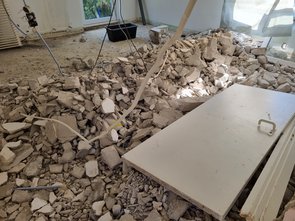 Und noch das letzte Wandstück zwischen Bad und Flur weggestemmt. Decke hält noch immer :-)