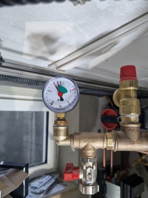 Am Nachmittag kam dann bissl überraschend Heizungsbauer. Chef mit einem super Mitarbeiter. Haben Pufferspeicher befüllt. Druck drauf :-)