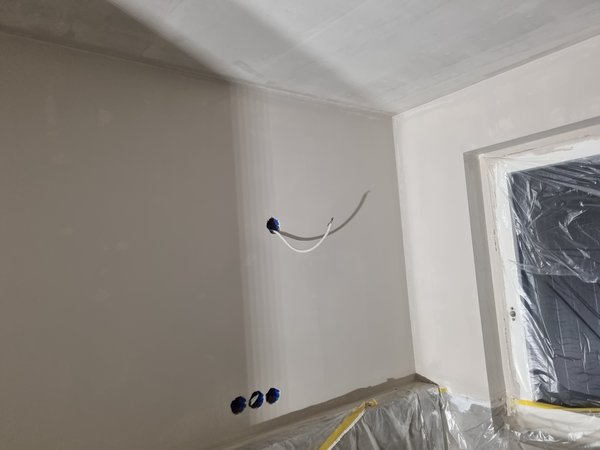 So ein Mist, echt! Voller Elan dann noch OG-Bad geschliffen und los gehts mit Malerei: die neue Superwalze. Die hat wesentlich weniger Flor als beim Maler :-( Oder nur durch Benutzung so?! Viel schlimmer aber: das Klicksystem ist nicht mit meinen Bügeln kompatibel :-( Also morgen wieder ungeplant bei Malerhandel anrufen und schauen, ob sie die haben und dann in Trudering holen :-(
