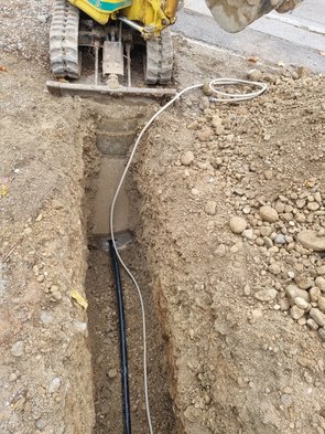 Dann gings schon gleich weiter mit der Grundwasserleitung, die eingegraben wurde und in den Schluckbrunnen verlegt wurde.