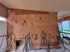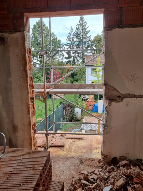 Auch für die gestrige Lösung mit dem Fußbodenheizungsverteiler im EG konnte schnell eine Lösung gefunden werden: ich zeichne die Änderung an, die Baufirma stemmt die Ziegel raus und betoniert noch einen Sturz ein. "Kann passieren" war der Kommentar, kein großes Problem :-)