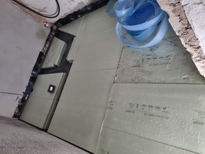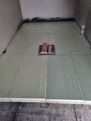 Da am Freitag, wenn wir nicht da sind, die Dame vom Estrichleger kommt, habe ich mit der Kellerdämmung (Wasch- und Technikraum und das Stückerl Flur vor der Treppe) einen Großteil gemacht, damit die morgen sicher fertig wird. Baufirma hat mir den heißen Draht geliehen. Damit gings ganz gut. Bissl Gefummel wars trotzdem. Musste dann aufhören, damit die Baufirma im Flur noch normal gehen kann und morgen das Waschmaschinenpodest erstellen kann.
