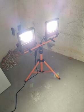 Zum ersten Mal die extra für den Bau besorgte LED-Strahler eingesetzt.