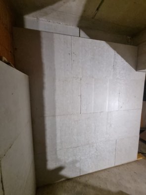 Die westliche Schleusenwand (zum Radlkeller) hat auch schwitzen angefangen. Dort ist jetzt bis knapp 30 cm unter der Decke gedämmt, das Problem sollte jetzt gelöst sein.