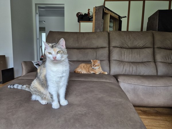 Nach fast 16 Wochen kam endlich die neue Couch! Farbe ist sogar noch geiler als auf dem Ledermuster. Zum Glück hab ich nicht die noch eins breitere genommen. Die wär dann echt zu groß geworden. Die Mädls habens gleich getestet.