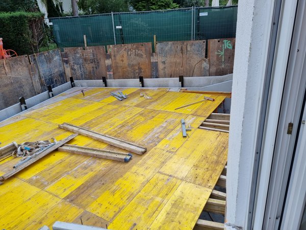 Damit Minibagger ins Gästezimmer per Kran gehoben werden konnte, wurden die Ständer umgebaut. Dann kam der Minibagger. Kanalrohre unendlichen Ausmaßes ausgebaut. Trotz Minibagger hat das Schaufeln ganz schön Zeit gekostet. Immer mit dem Schubkarrn in die Container gefahren, die dann mit dem Kran in die Rampe gehoben und geleert wurden.