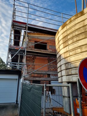 Heizungsbauer hat heute angefangen. Erstmal alles ausführlich durchgesprochen. Bei der Gelegenheit festgestellt, dass wir die FBH-Verteilerkästen gleich in allen Etagen aussparen hätten lassen sollen. Baufirma hat das aber kurzfristig noch nachholen können und gestemmt und einen Sturz eingemauert. Dann gings mit der Lüftung los. Der Monsterkasten kommt ins abgehängte Dach.