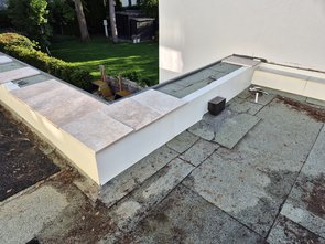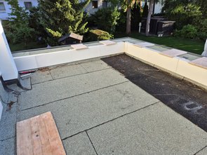 Sie haben weitere Attikableche montiert. Und wir haben Lösung für das Geländer ausgetüftelt.
