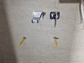 Lustig war dann die Waschtischarmatur :-( Der eingedrehte Baustopfen war abgebrochen! K... Würg! Hatte zum Glück zwei gute Ideen, wie ich das blöde Teil dann doch rausgebracht hab. Endmontage morgen. Muss ich nochmal schaun, wo da überall Hanf rein muss und wie man die Abdeckung rechts fixiert kriegt.