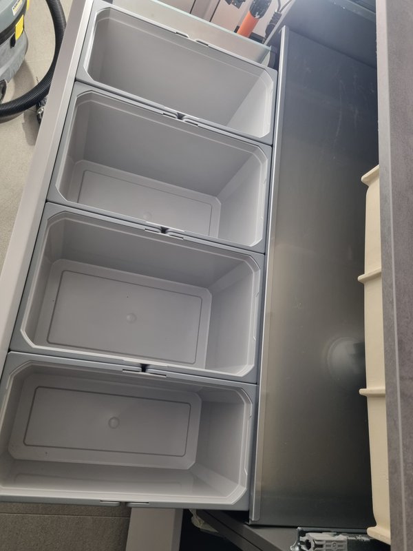 Und dann gleich noch weiter: den Kompostbehälter auch noch eingeklebt. Der ging wesentlich einfacher abzuziehen. Absolut eben.