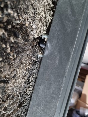 Erste Schleusentüre gebohrt und gedübelt. Ging zügig - bis auf eine Stelle, bei der ich gleich mal einen Bohrer geschrottet hab: Baustahl in der neuen Betonwand - zum Glück habe ich alle Bohrer auf 4-Schneider und einen richtig guten 10-er von Bosch. Und dann auch noch das: obwohl original Würth-Schrauben hats mir einen Torxkopf ausgedreht und die Schraube ging nimmer ganz rein. Stabil ist es trotzdem. Hoffentlich hat die Abdeckung Platz drauf.