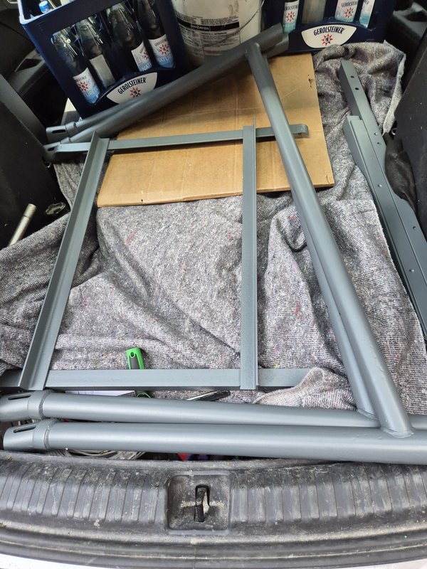 Jetzt muss ich nur noch die Holzplatte bissl nachschleifen, lackieren, an einer Stelle leimen. Die Schrauben noch entrosten und dann kanns an den Wiederaufbau gehen :-)