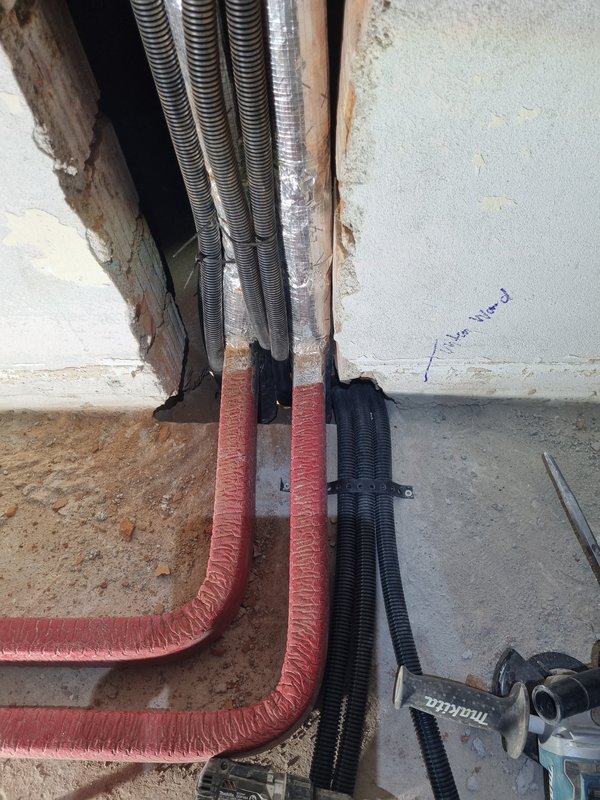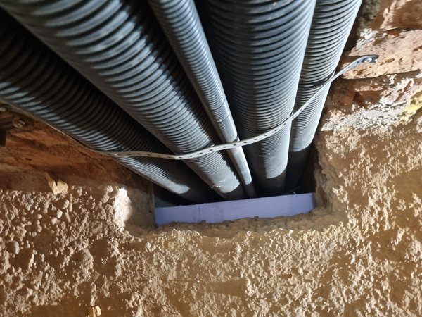 Heute im OG weiter geschlitzt und gestemmt. Und auch das zweite Zipscreenkabel reingebracht durchs Kompriband. Was für ein Gefummel.