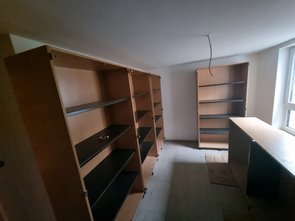 Ich bin dann am späten Nachmittag nochmal rüber und wollte eigentlich das Büro nochmal malern. War mir dann aber für den Schlussanstrich eigentlich schon zu dunkel. Und ich musste erst noch bissl schleifen, nachspachteln und habe etliche Stellen noch korrigiert.