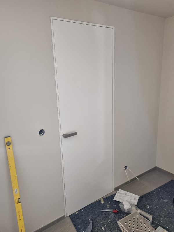 Tür ist nicht ganz unaufwendig und mir ist ein Fehler beim Bohren der Grifflöcher passiert. Optisch sind die Türen echt der Hammer. Inspiriert durch meinen Bruder, die von diesem Hersteller die schon auch recht schicken mit Magnetfalle haben, haben wir uns informiert und diese Megatüren ausgesucht. Einstellen muss ich noch bissl üben. Bohrfehler muss ich morgen korrigieren. Aber Hauptsache, ich kann jetzt aufs Klo, ohne dass man von der Straße aus zuschauen kann.