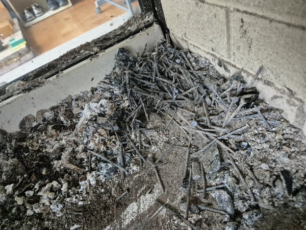 Asche aus dem Kaminofen. Echt Wahnsinn, wie wenig Asche die modernen Kaminöfen (v.a. die mit Abbrandsteuerung) produzieren. Der Großteil des "Asche"volumens waren Nägel von den Paletten. Hätt ich beim Schrotthändler aber wahrscheinlich nur ein paar Cent dafür bekommen. Gönne ich der Stadt, wenn sie es per Magnet aus dem Restmüll ziehen.