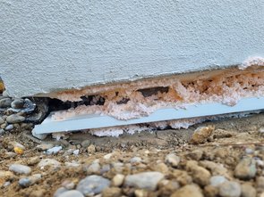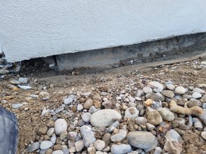 Bevor ich die Sockelschlämme auftragen kann, habe ich bissl den Kies vorm Esszimmer noch weggeschaufelt und noch die Dämmung bissl weiter runtergezogen. Macht echt keinen Sinn, dass da eine Unterbrechung der Dämmung drin ist. War ganz schönes Gefummel :-(