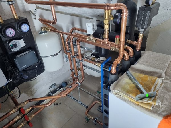 Leider einen "Fehler" gemacht, dass oben nicht genug Platz war, also zwei Kabel nochmal verlängern müssen und nochmal neu angeschlossen. Jetzt ist genug Platz, dass ich alle Kellerleitungen rankrieg. Wenn ich gewusst hätt, dass es so viel Arbeit verursacht, fünfadrige Kabel anzuklemmen... Aber der Vorteil bleibt: wenn ich später mal was umklemmen will oder was schalten will: ein paar Handgriffe und es geht.