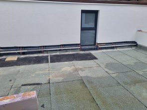 Sie haben die Halteschienen für die Bitumenbahnen angedübelt.