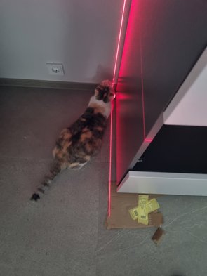 Gestern Abend noch den Winkel für den Geschirrspüler noch gesucht und gefunden. Heute mit Mama montiert. War bissl knifflig. Danach konnte ich dann die beiden Küchenkastl am Eck genau justieren. Dank Laser - und Tigers Hilfe gings dann doch ganz gut. Mach einen Laser an und Tiger fängt ihn... Sie versucht es zumindest.