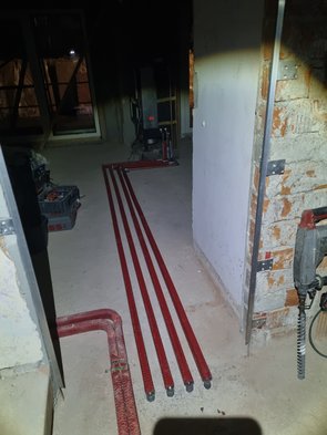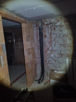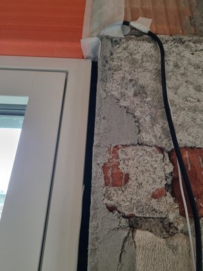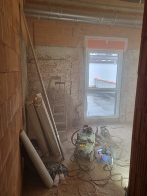 Fensterbauer hatten leider nicht alle Leitungen auf eine Seite gezogen, das hab ich nachgeholt und noch das erste Außenkabel nach innen gezogen.