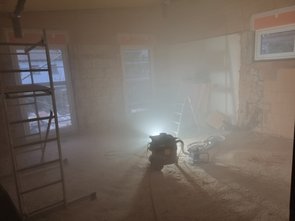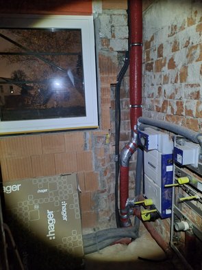 Staubwolke, Kaminofenanschluss, Abwasserleitungen