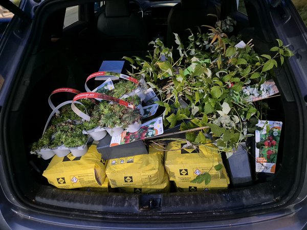 Morgen dann erstmal Auto ausladen (keine Angst, Pflanzen haben wir am Abend noch raus).