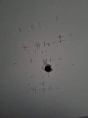 Also dann doch den Metabohammer geholt. Putzer muss eh nochmal die Decke gscheit verschließen. Damit dann in jeweils unter einer Minute die Löcher gefunden, die der Putzer eigentlich markieren hätte sollen...