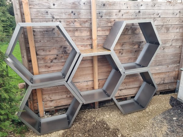 Ich habe heute die restlichen Elemente der Holzlege zusammengeschraubt und mal probegestellt, damit wir morgen die Steine dafür legen können.
