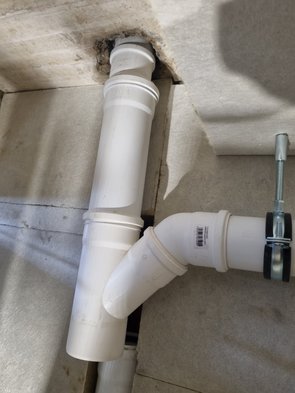 Morgen/Montag dann noch hinter dem Ablaufrohren dämmen, Rohre mit Schellen andübeln und unten den Ablauf in die finale Form bringen. Wird sicher nochmal ordentlich Zeit in Anspruch nehmen, aber dann ist es ganz fertig. Und jetzt ist nix mehr zu tun, wo ich auf jemand zum Leiterhalten o.ä. angewiesen bin.