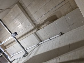 Ganz schön stressig und brutal belastend für Handgelenke und Unterarme, aber jetzt hab mas: die TG-Dämmung ist fertig!!! Und die beiden Dachterrassenabläufe sind angeschlossen. Zum Glück hats heut (bisher) nicht geregnet und wir konnten das am Stück durcharbeiten.