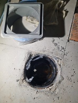 Der Fliesenleger hat bemängelt (ich hatte es leider auch schon gesehen), dass die Estrichleger die Hebeanlage im Kellerbad nicht 100% in den Estrich eingearbeitet hatten, sondern den Rand überstehen haben lassen :-( Also das Teil rausgestemmt. Meine Verklebung konnte ich ganz gut lösen, aber die Flüssigkunststoffeindichtung vom Abdichter war zäh ohne Ende. Mit Goaßhaxn nach und nach rausgeholt. Muss ich nächste Woche den Rand leicht abstemmen und neu einsetzen. Mal schaun, wie ich da entlang des Flüssigkunststoffs wieder reinkomm... Einen kleinen Riss hat die Abdeckung bekommen, aber da kommt eh Dichtband drüber, das dürfte kein Problem werden.