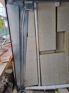 Also erstmal den Regenablauf komplett umgebaut, dass das Rohr gerader nach unten in die neue Aussparung geht und von vorne verschlossen werden kann. Echt witzig, dass ich aus allen Teilen, die ich für die finale Konstruktion benötige, die Hilfskonstruktion bauen konnte :-)