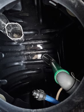 Ich hab die Zisterne dann mit dem Nasssauger ausgesaugt und das bei der Montage reingefallene Kieszeug entfernt. Dann den Höhensensor genau auf 15 cm positioniert und befestigt. Dann die schwimmende Entnahme eingebaut. Was für ein störrischer Schlauch. Hoffentlich klappt das und gibt nicht die gleichen Probleme wie in der aktuellen Wohnung (wobei der neue viel schwerer ist, also absinken müsste). Vielleicht wirds besser, wenn mal Wasserdruck drin ist.