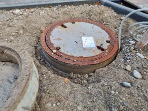 Die Jungs haben den Brunnenschachtaufsatz entfernt und gegen den erhöhten und neuen (tagwasserdichten) getauscht und eingemörtelt (Vorschrift).