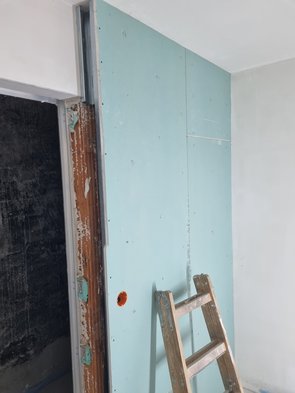 Haben das OG bis auf die Türlaibungen "fertig" gemacht. Schlafzimmer schaut jetzt echt geil aus. Fehlt nur noch Wandfarbe, Parkett und die Steckdosen!