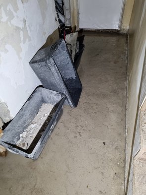 Zur Sicherheit nach dem ersten großen Guss rüber gefahren und kontrolliert: Scheibenkleister. Dann zu zweit nochmal rüber und geschöpft und mit altem Familien-Kärchernasssauger das schlimmste im EG beseitigt. Küche und Flur standen unter Wasser und auch im Wohnzimmer (wo das ganze Werkzeug und Material lagert) hat es leicht reingezogen.