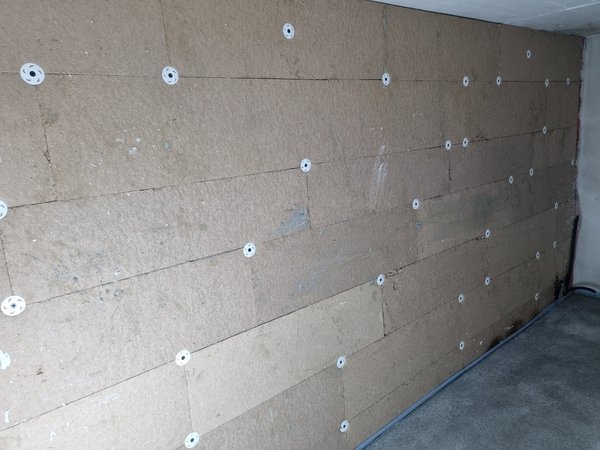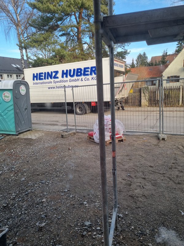 Überraschungslieferung, Container, Stufe betoniert, Innendämmung gedübelt, Müll