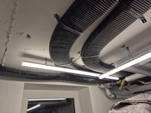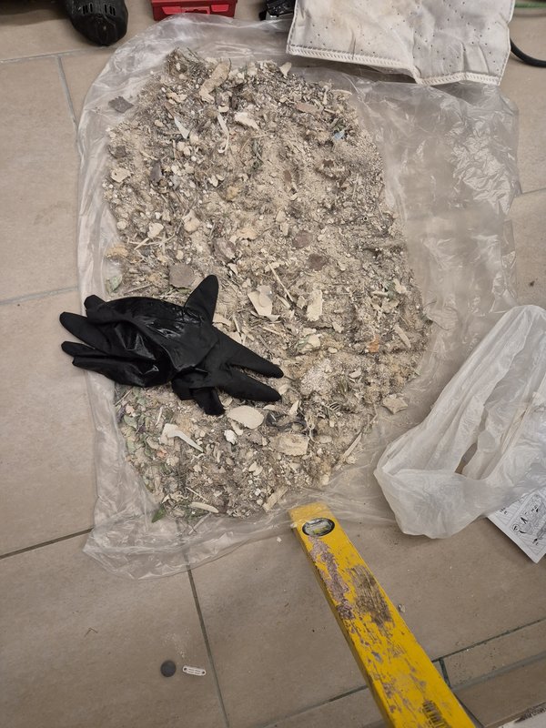Gleich noch Kabelkanäle dort gebohrt, wo Werkbank hinkommt, dass ich da die Werkbank dann aufbauen kann.