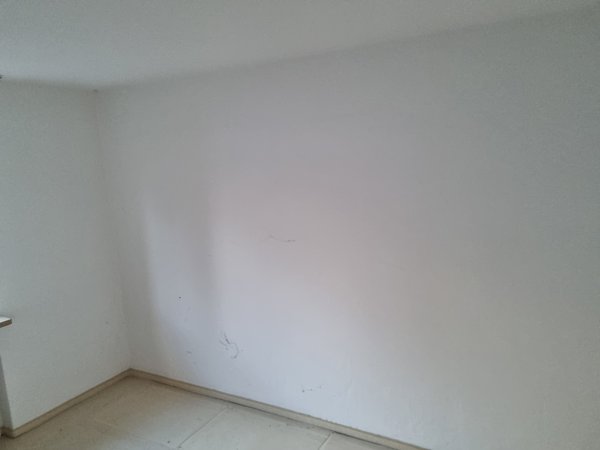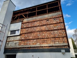 Und danach hat dann jemand den Kleiderschrank im Schlafzimmer abgeholt. Von den nichtmal zwei Jahren haben sich Stockflecken dahinter gebildet. Gut, dass das Gebäude komplett neu gedämmt wird und ein neues Dach bekommt.