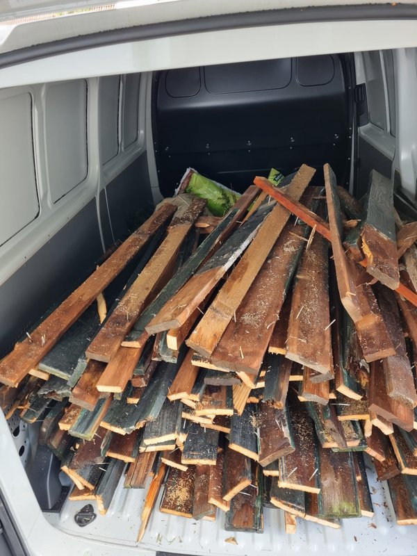 Vorm Duschen gings erstmal zum Einladen des Holzes aus den ersten beiden Aktionen (und des Heckenrückschnitts). Der Transporter schluckt schon einiges. Einladen war aufwendiger als gedacht.