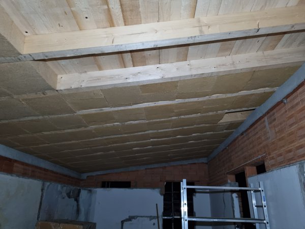 Nach dem Einkaufen und kurzer "Mittag"spause gings dann wieder an meine geliebte Dachsparrendämmung. Etwas komische Reihenfolge, da ich die Sparen über dem Treppenhaus machen wollte, wenn Anna zur Sicherung und zum sicheren Umstellen des Gerüsts da ist. Jetzt wirds langsam echt und die Laune steigt auch. Ich habe leider nicht auf die Uhr geschaut, aber das dürfte die nächsten Tage jetzt dann echt fertig werden. Jetzt sind 9 von 13 Sparren schon komplett fertig, die übrigen sind traufseitig ja schon die ersten vier Segmente drin.