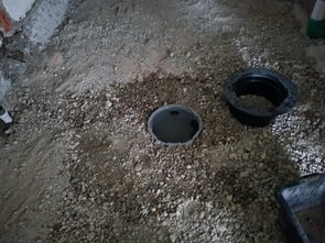 Dann noch die restlichen Rohre und Anschlussstellen der Hebeanlage (es steht immer noch genauso viel Wasser drin wie wir eingefüllt haben :-)) und Kanalrohre eingesandet und bissl Kies aufgefüllt, damit die Baufirma halbwegs eine Ebene für die Kellerbodenplatte hat.