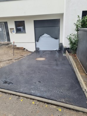 Kurz vor sieben waren die Jungs schon da und haben die Autorampe nochmal verrüttelt. In der Folge mussten wir den Zisternendeckel nochmal nachnivellieren. Gut, dass der jetzt einasphaltiert ist und sich nimmer verändern kann. Wie oft der gewandert ist...