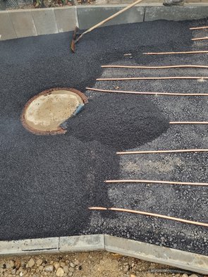 Obwohl ich vom Asphaltbauer Chef, Vorarbeiter und alle voll drauf eingeschärft habe, dass die Rohre so empfindlich sind, gabs leider einen Dätscher, den ich durch Zufall gesehen habe, als ich bei Deckschicht mal kurz zugeschaut habe. Wahrscheinlich hält das 100 Jahre. Habe für Notfälle aber die Stelle genau dokumentiert, damit man sie isoliert ausbessern könnte.