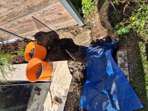 Vorbereitung war, dass ich auf den Fotos geschaut habe und der Verdacht war, dass ich evtl. mit dem Erdbohrer beim Eibesetzen die Leerrohre beschädigt habe.